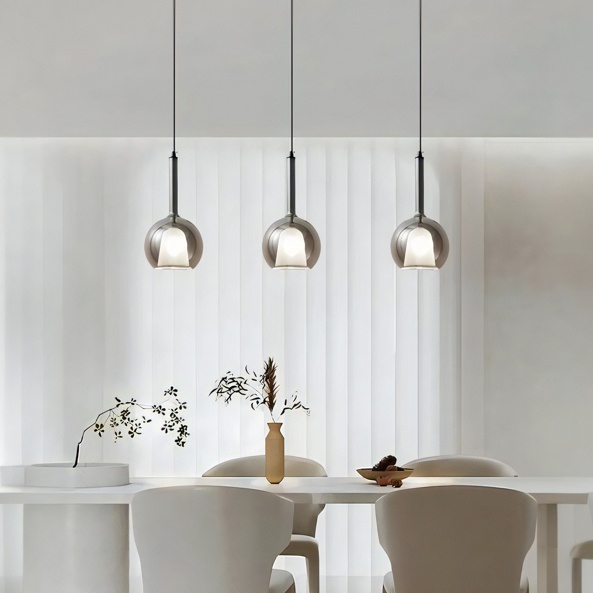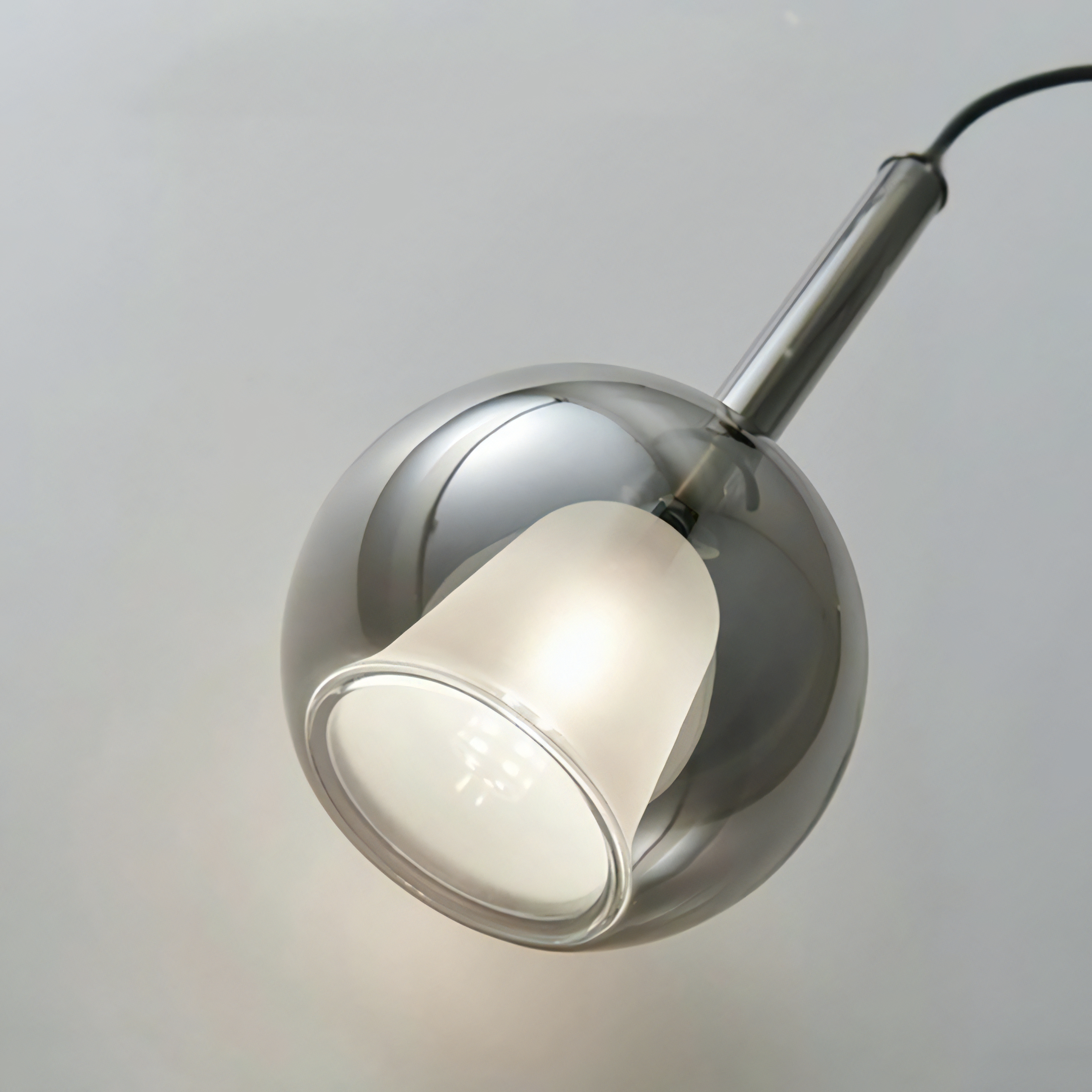 Lampada a sospensione singola a LED in stile elegante e moderno di forma sferica in vetro specchio fumè.