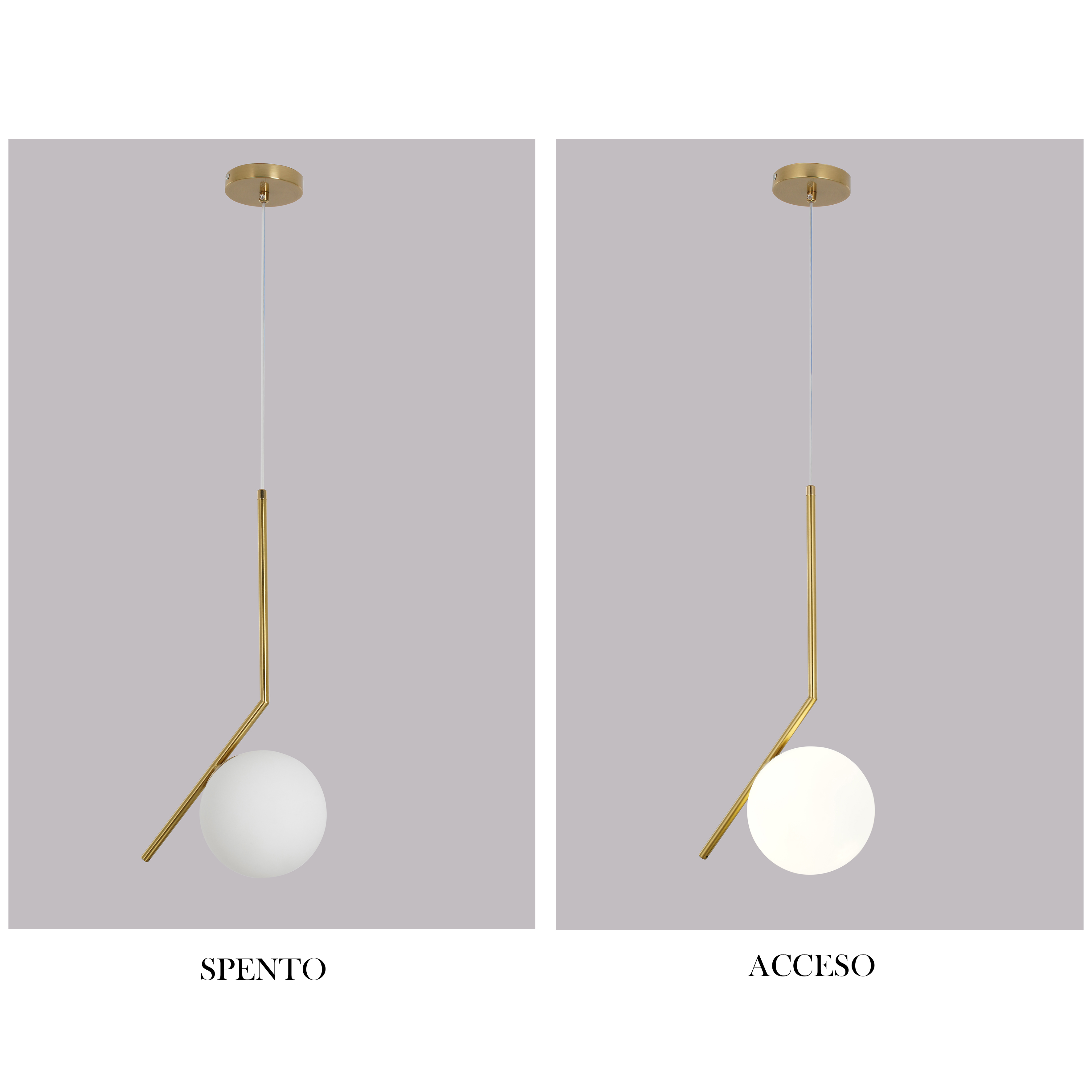 Questo pendente combina il meglio del metallo e del vetro per un design elegante e senza tempo. La finitura oro leggermente lucido aggiunge un tocco di lusso, mentre il vetro opalino garantisce un'illuminazione morbida e piacevole che crea un'atmosfera accogliente.