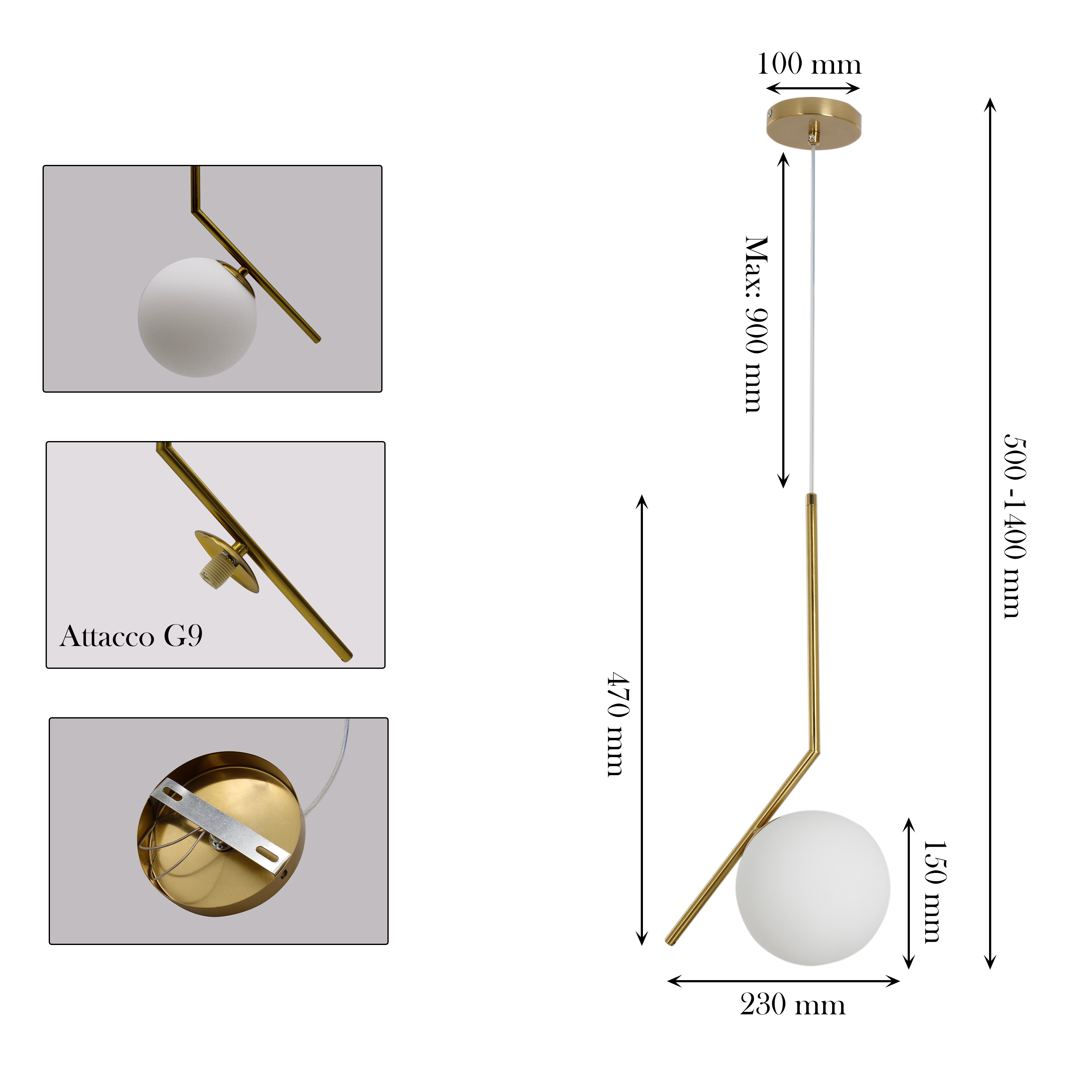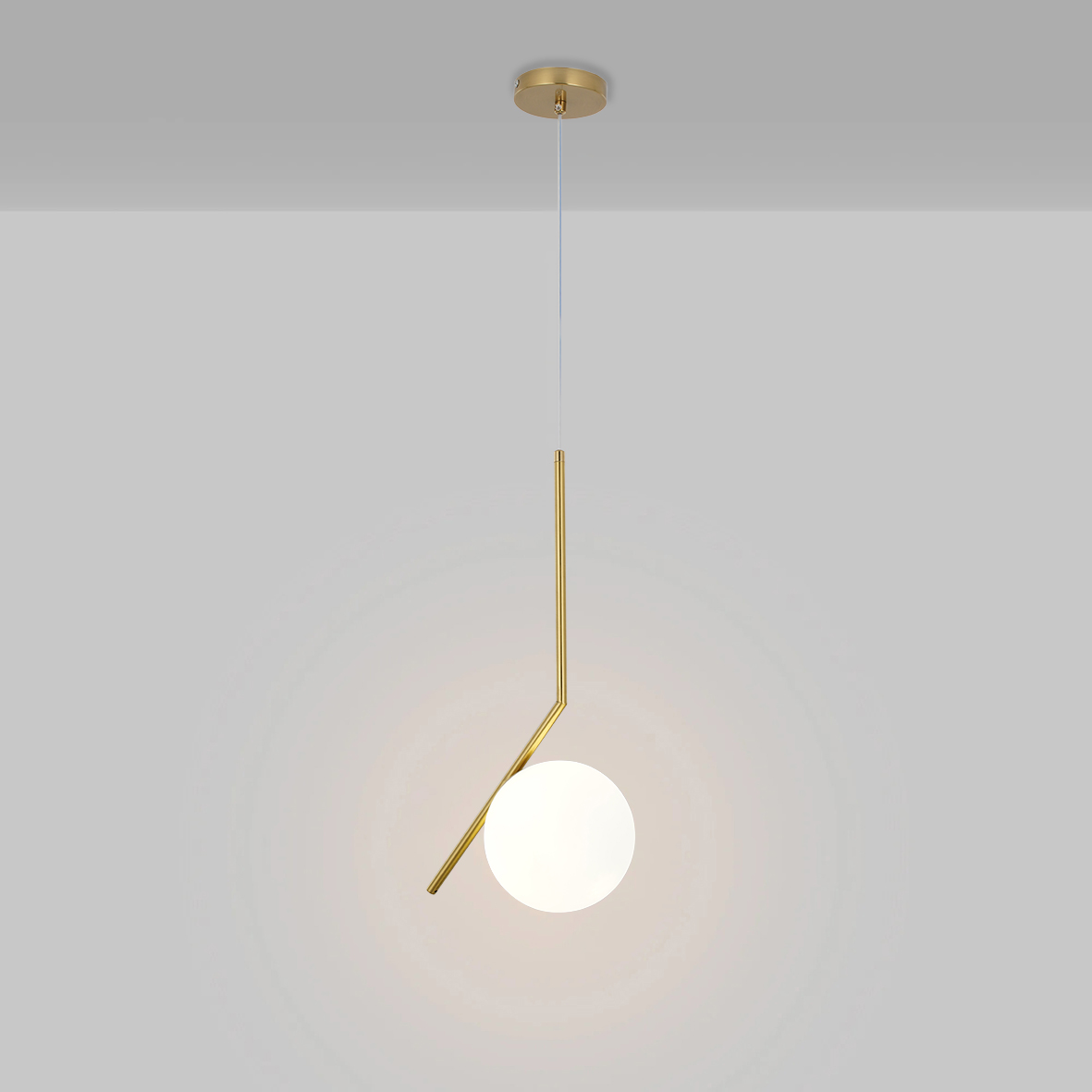 Questo pendente combina il meglio del metallo e del vetro per un design elegante e senza tempo. La finitura oro leggermente lucido aggiunge un tocco di lusso, mentre il vetro opalino garantisce un'illuminazione morbida e piacevole che crea un'atmosfera accogliente.