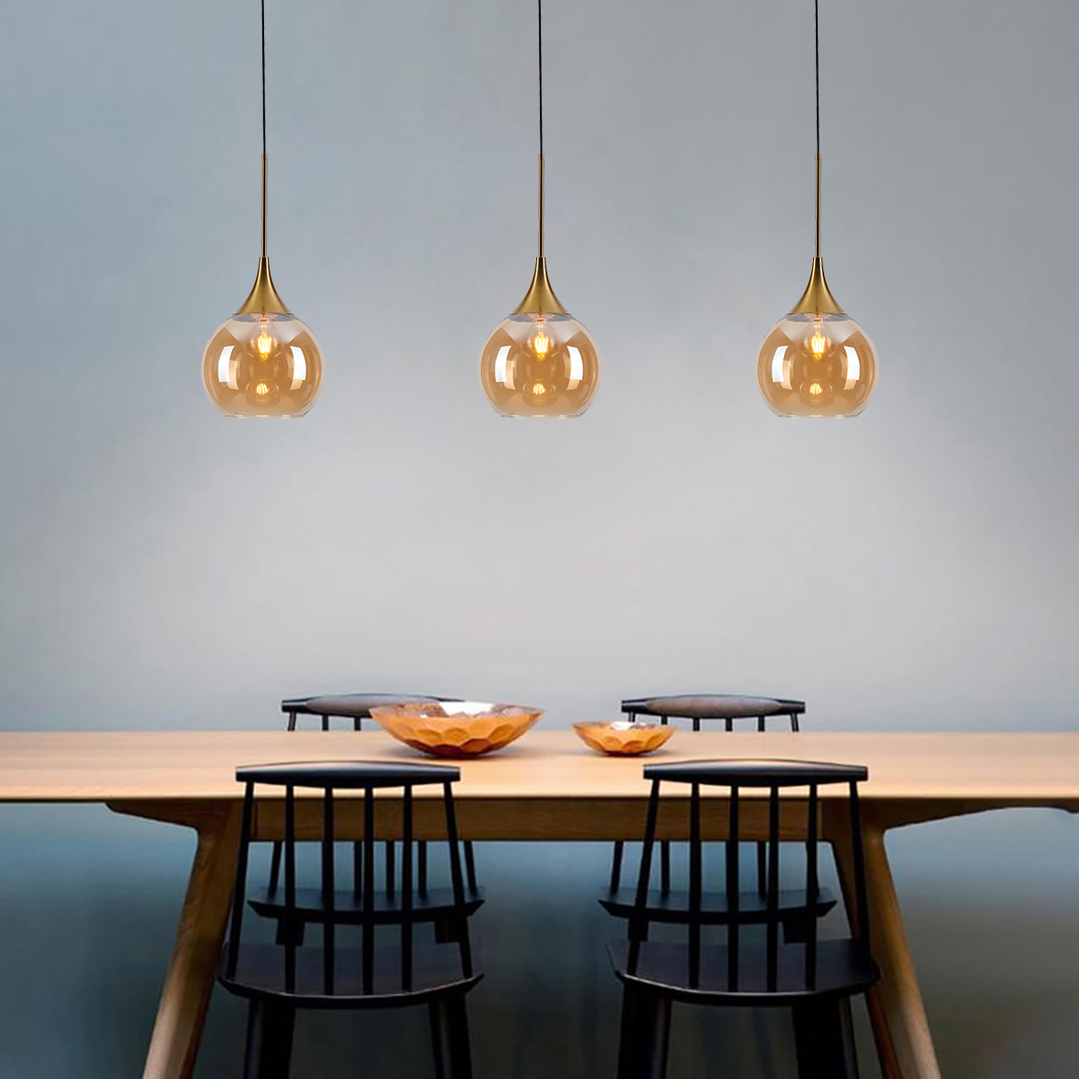 Lampada a sospensione singola a LED in stile elegante e moderno di forma sferica in vetro specchio ambrato.