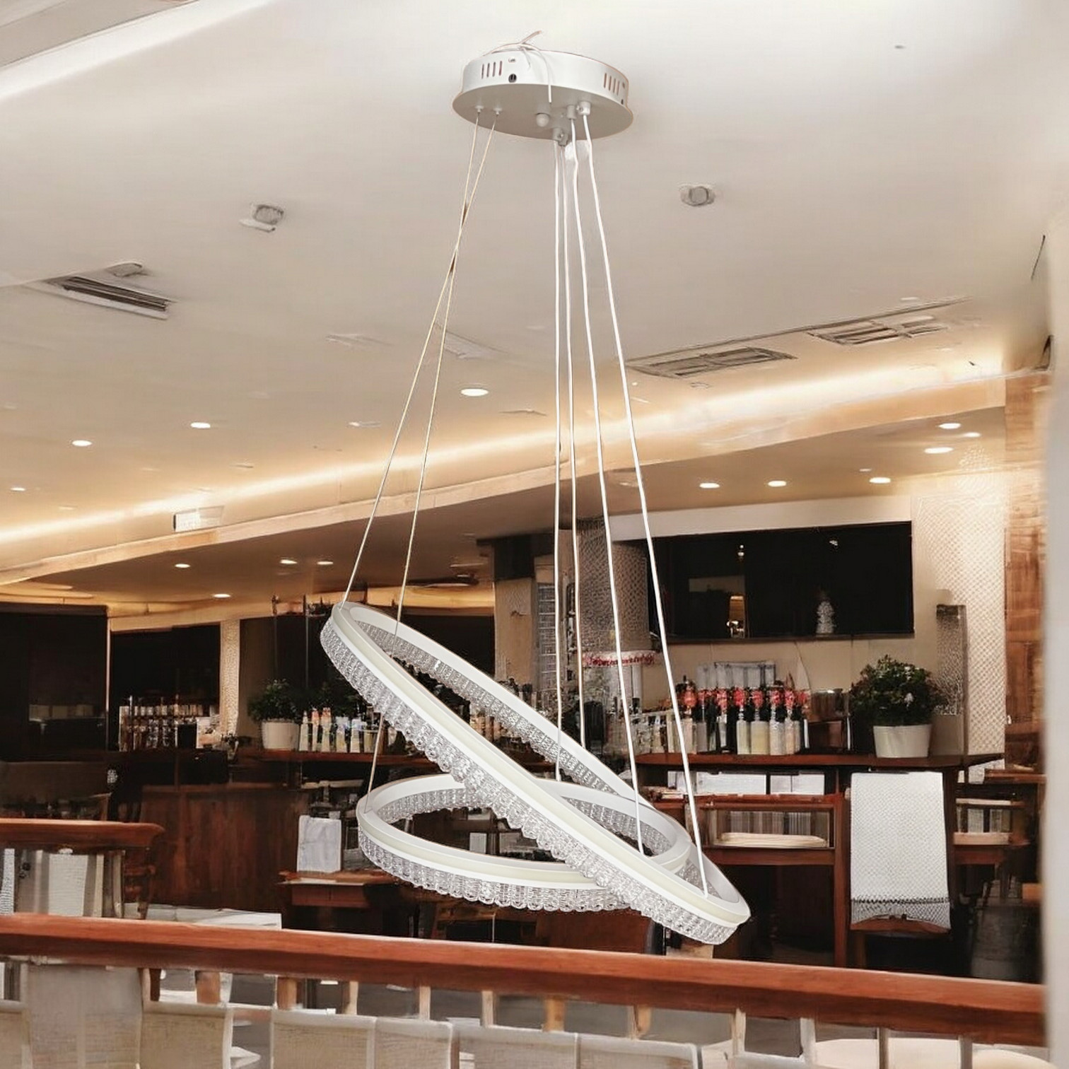 Scopri l'eleganza futuristica del nostro Lampadario a Sospensione Vortice, un capolavoro di design moderno che combina funzionalità avanzate con un'estetica mozzafiato. Questo lampadario presenta anelli LED intrecciati che creano un effetto visivo dinamico, ideale per aggiungere un tocco di modernità a qualsiasi ambiente. Con un consumo energetico di soli 120 watt, offre un'illuminazione intensa ma efficiente, ideale per ambienti sia residenziali che commerciali. Perfetto per soffitti alti, questo lampadario non solo illumina il tuo spazio, ma diventa anche un punto focale di stile e innovazione. Led incorporato pronto uso.