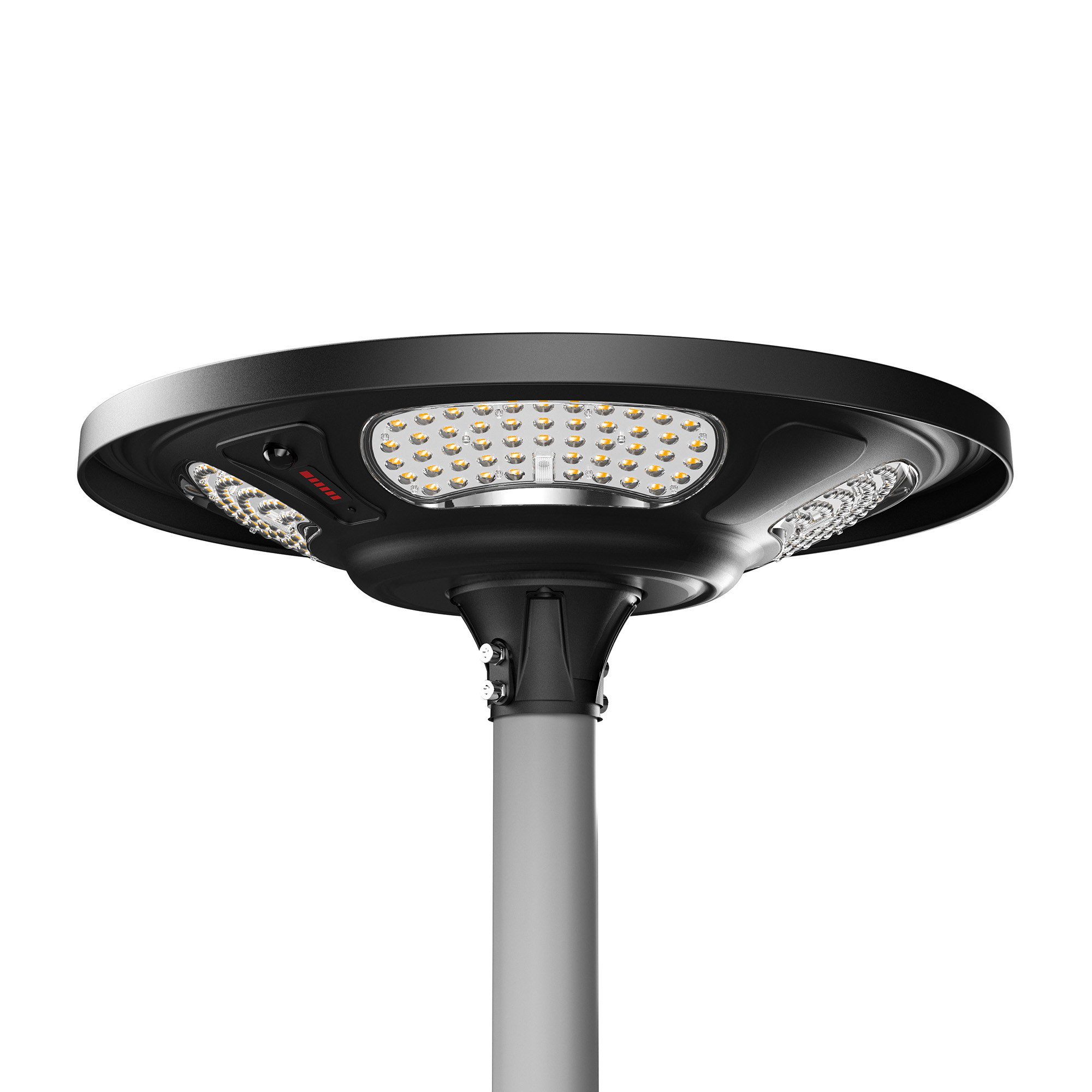 Questa lampada a LED solare rappresenta una soluzione di illuminazione autonoma, efficiente e sostenibile, ideale per applicazioni commerciali e pubbliche. Il design compatto e integrato unisce un pannello fotovoltaico ad alta efficienza, la batteria agli ioni di litio e l'unità di illuminazione a LED in un unico corpo solido, eliminando la necessità di cablaggi complessi o di connessioni alla rete elettrica.