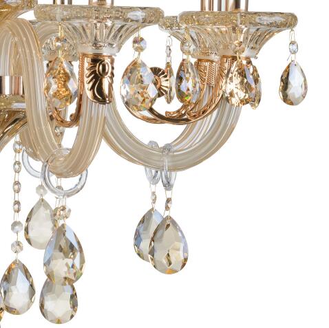 Questo lampadario delle linea 2076 da 8 luci in vetro cristallo dorato in stile vittoriano è perfetto per arredamenti classici o realizzati in stile moderno dando con un tocco di antichità ed eleganza.