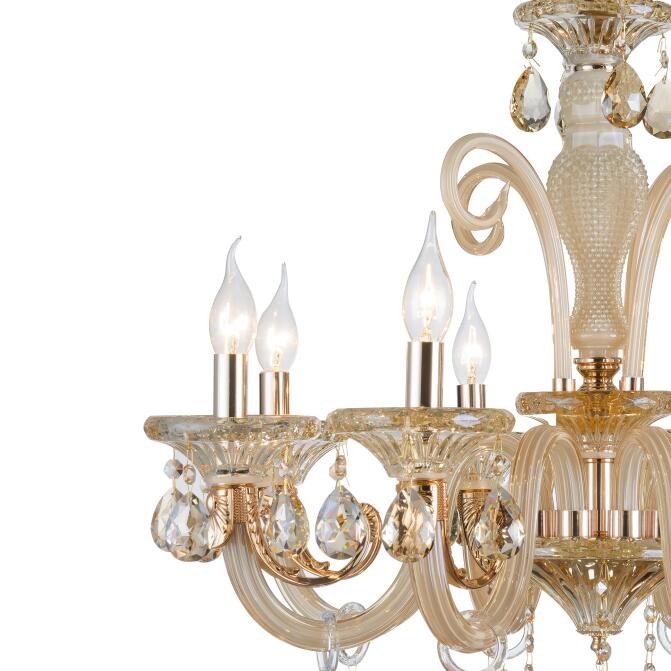 Questo lampadario delle linea 2076 da 8 luci in vetro cristallo dorato in stile vittoriano è perfetto per arredamenti classici o realizzati in stile moderno dando con un tocco di antichità ed eleganza.
