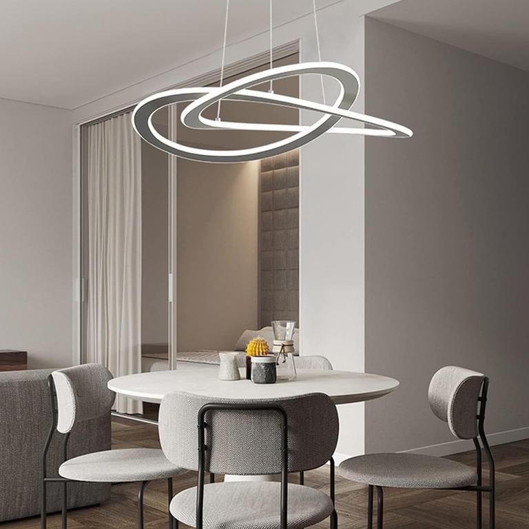 Questo lampadario a LED moderno sospensione è un'opera d'arte luminosa che unisce eleganza e funzionalità. Sospeso da cavi regolabili, il lampadario presenta un design dinamico con anelli LED intrecciati e sfere decorative luminose, creando una danza visiva di luce e forma. Il contrasto tra la finitura bianca dei componenti e l'intenso sfondo viola aggiunge un tocco drammatico, rendendolo un punto focale straordinario in qualsiasi ambiente. Ideale per spazi contemporanei, questo lampadario non solo illumina lo spazio con una luce brillante ed efficiente ma funge anche da pezzo centrale decorativo in salotti, ingressi o sopra il tavolo da pranzo. L'illuminazione LED integrata assicura efficienza energetica e una lunga durata, rendendo questa lampada una scelta sostenibile ed elegante per la casa moderna.