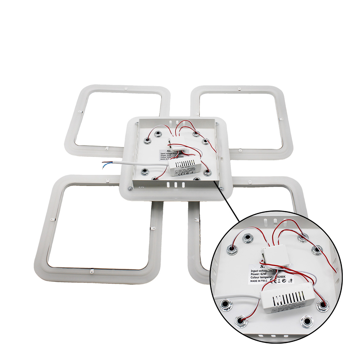 Elegante plafoniera LED caratterizzata da quattro moduli quadrati dal design moderno e dinamico. La struttura bicolore crea un contrasto visivo sofisticato, ideale per interni contemporanei. L'illuminazione a 4200 Kelvin (Bianco Naturale) offre una luce nitida e funzionale, perfetta per garantire ottima visibilità e concentrazione in ambienti come cucine, studi e soggiorni, senza affaticare la vista. Unisce alta efficienza energetica a un forte impatto estetico.