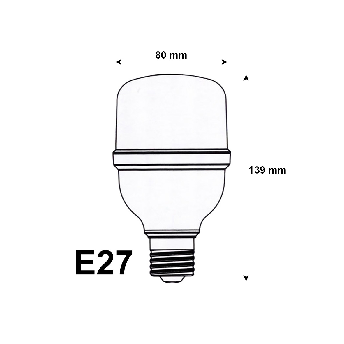 La lampadina 25W attacco E27 offre una luminosit? di circa 2250 Lumens, equivalente a 270W rispetto a una tradizionale alogena. Realizzata in PVC di alta qualità con attacco in alluminio, riduce al minimo l'emissione di calore e garantisce una vita media di circa 20000 ore. Il grado di protezione è IP20, ideale per uso interno.