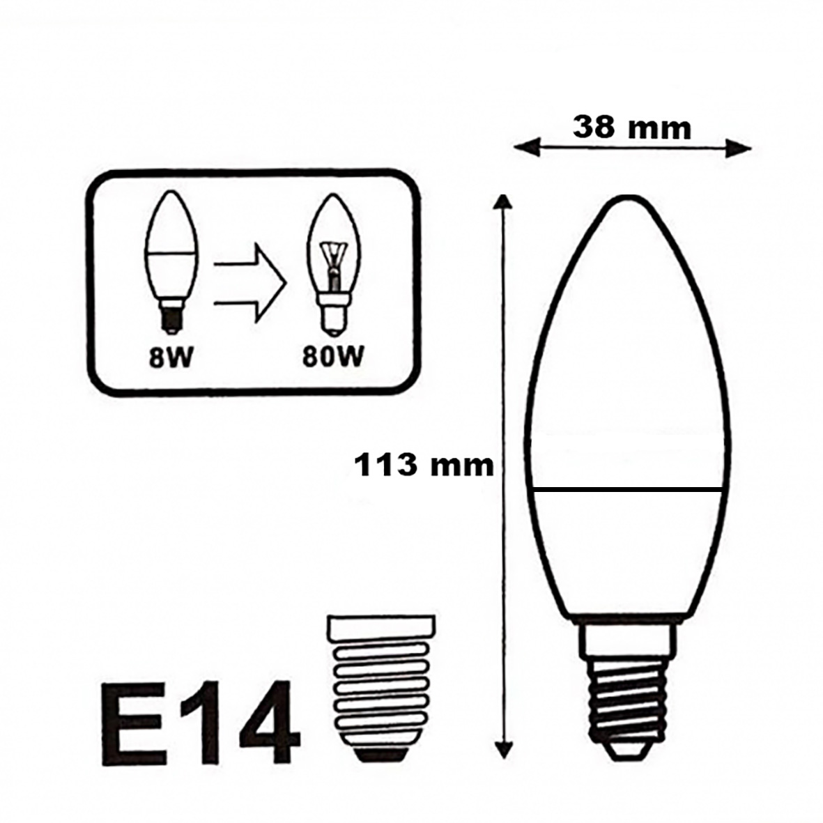 Lampadina a Led attacco piccolo E14 8w Candela oliva passo piccolo a vite