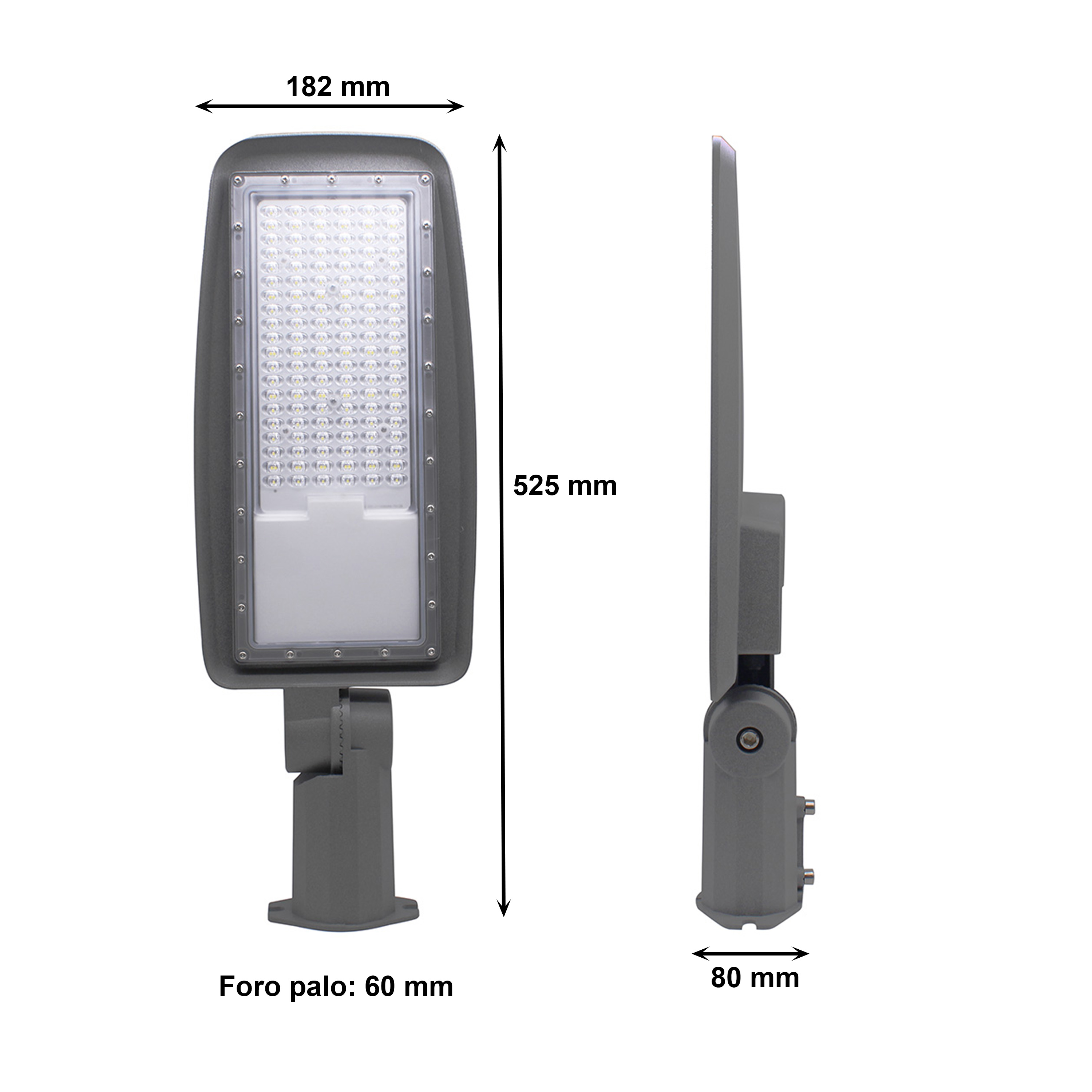 Lampione stradale LED 150 W con snodo incorporato, dotata di tecnologia LED ad alta luminosità, che garantisce un'elevata qualità costruttiva e un affidabilità del prodotto nel tempo.