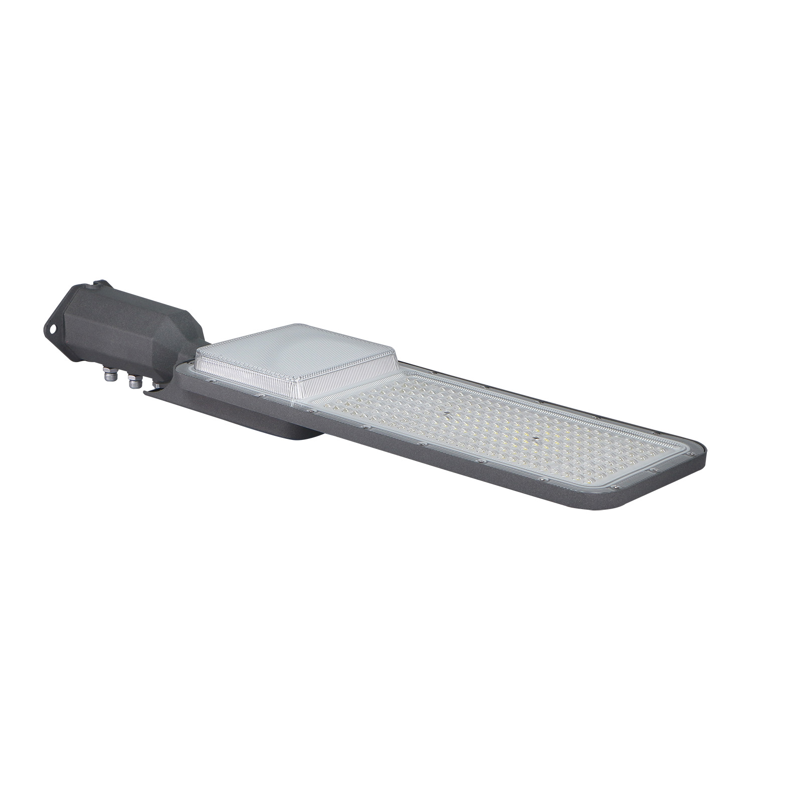 Questo lampione stradale a LED è un apparecchio di illuminazione professionale ad alta efficienza, progettato per la sostituzione dei vecchi sistemi di illuminazione stradale. Il corpo, realizzato in alluminio pressofuso, garantisce una lunga durata e un'elevata resistenza agli agenti atmosferici, con un grado di protezione IP65 che lo rende adatto per l'installazione in ambienti esterni.