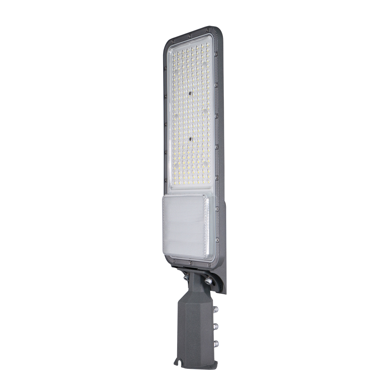 Questo lampione stradale a LED è un apparecchio di illuminazione professionale ad alta efficienza, progettato per la sostituzione dei vecchi sistemi di illuminazione stradale. Il corpo, realizzato in alluminio pressofuso, garantisce una lunga durata e un'elevata resistenza agli agenti atmosferici, con un grado di protezione IP65 che lo rende adatto per l'installazione in ambienti esterni.