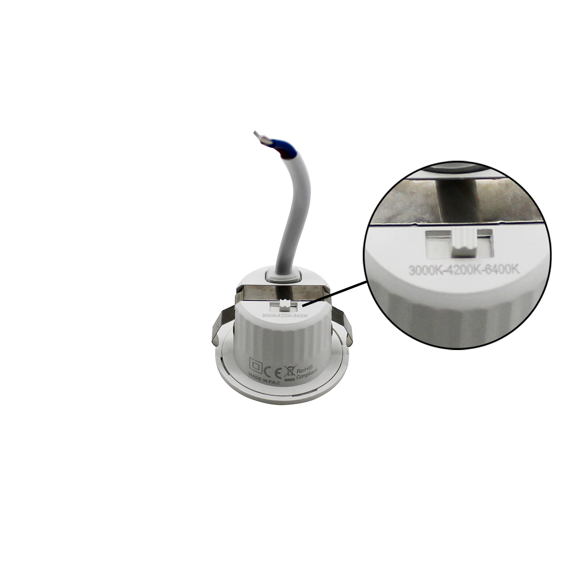 Faretto LED da incasso 3W con switch selezione colore e cornici intercambiabili