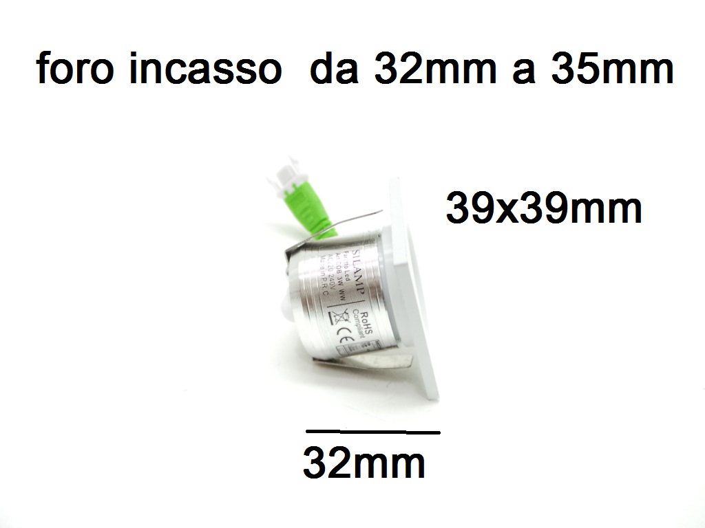 Mini Faretto Led da incasso 3W Quadrato lato 39mm F.I.32-35mm