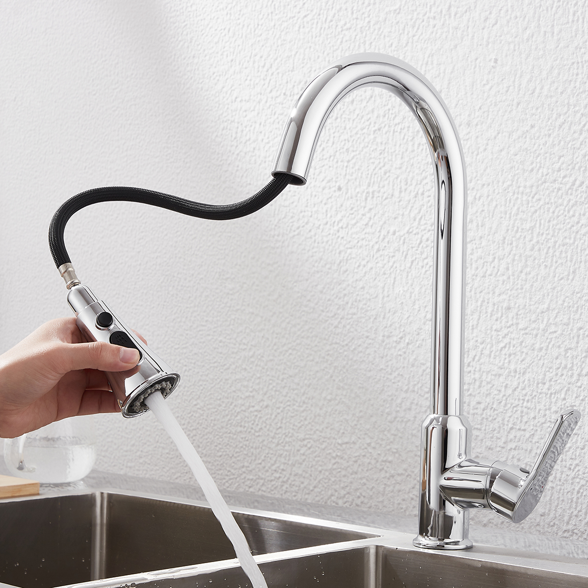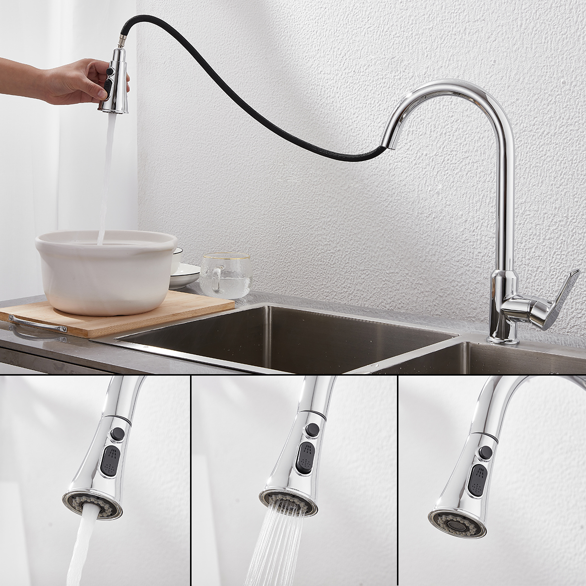 Miscelatore Cromato girevole doccia estraibile per lavello Cucina T006-6