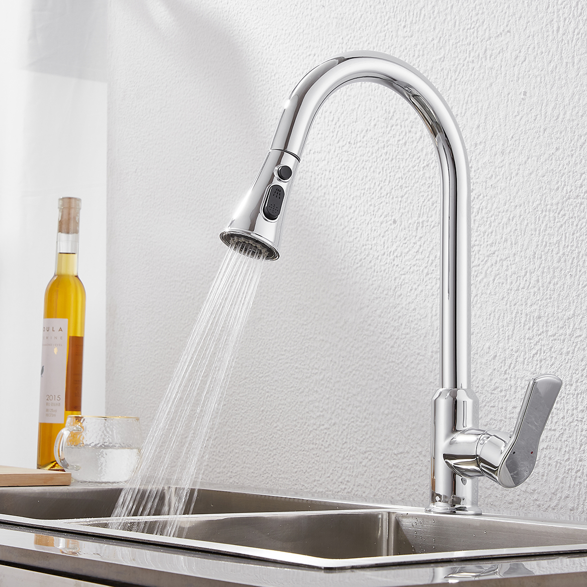 Grazie alla doccetta estraibile, permette di raggiungere zone del lavello stesso che con un normale miscelatore non è possibile raggiungere; inoltre con la doccia doppio getto in dotazione è possibile sia avere un flusso d'acqua normale che a spruzzo.
