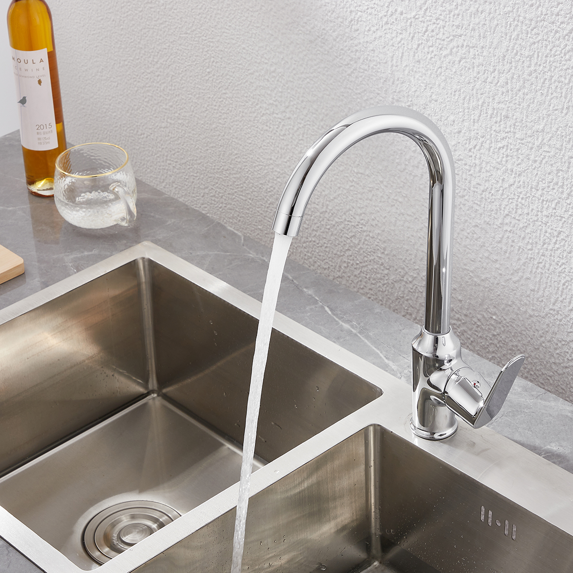 Miscelatore Rubinetto Cromato girevole per lavello Cucina completo di kit X002-5