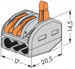 Morsetto rapido a leve – 3 vie (0,08 ÷ 2,5 mm²) Con le sue leve indipendenti consente collegamenti istantanei e sicuri su cavi flessibili o rigidi. Perfetto per giunzioni in quadri elettrici, cassette di derivazione e retrofit d’impianto: basta sollevare ? inserire ? abbassare la leva e il contatto è bloccato.