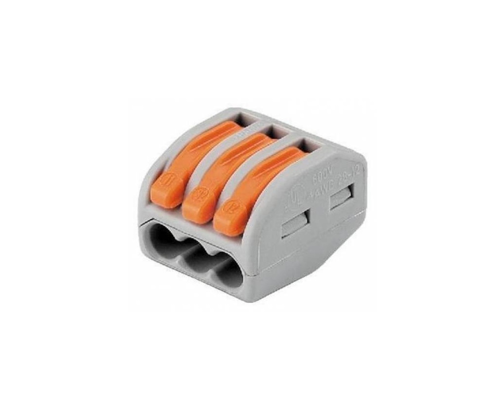 Morsetto rapido a leve – 3 vie (0,08 ÷ 2,5 mm²) Con le sue leve indipendenti consente collegamenti istantanei e sicuri su cavi flessibili o rigidi. Perfetto per giunzioni in quadri elettrici, cassette di derivazione e retrofit d’impianto: basta sollevare ? inserire ? abbassare la leva e il contatto è bloccato.