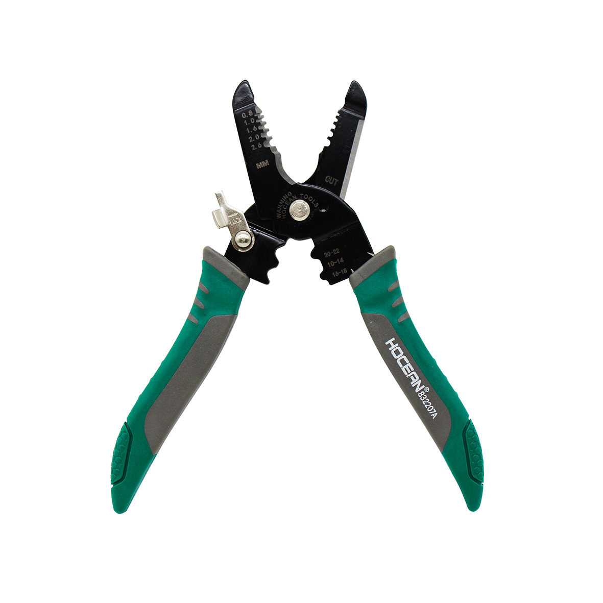 Le lame per tagliare e spellare i fili, sono realizzate in acciaio carbonio indurito, che resta affilato per anni. La pinza è dotata anche di meccanismo di blocco, che tiene l’attrezzo bloccato quando non in uso.