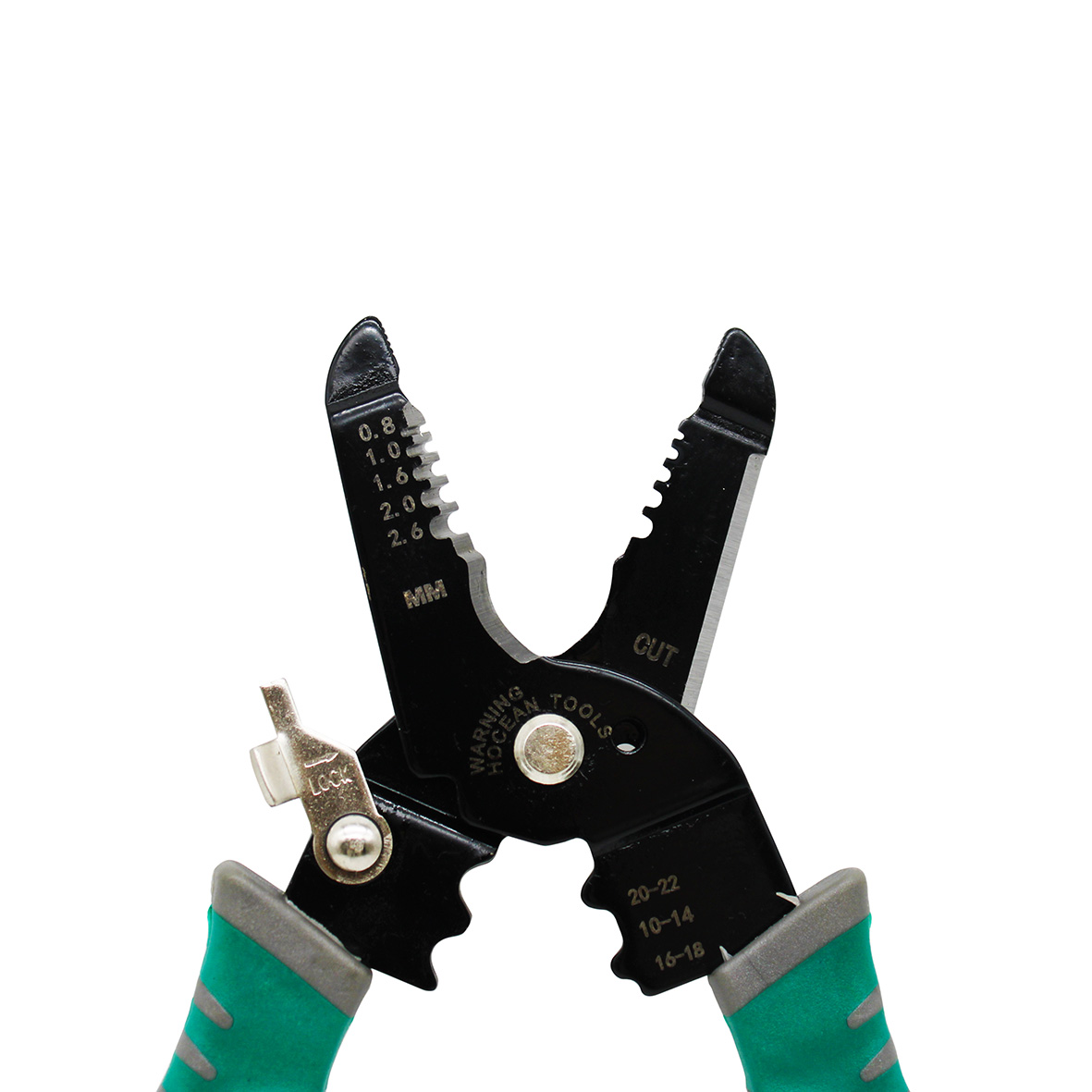 Le lame per tagliare e spellare i fili, sono realizzate in acciaio carbonio indurito, che resta affilato per anni. La pinza è dotata anche di meccanismo di blocco, che tiene l’attrezzo bloccato quando non in uso.