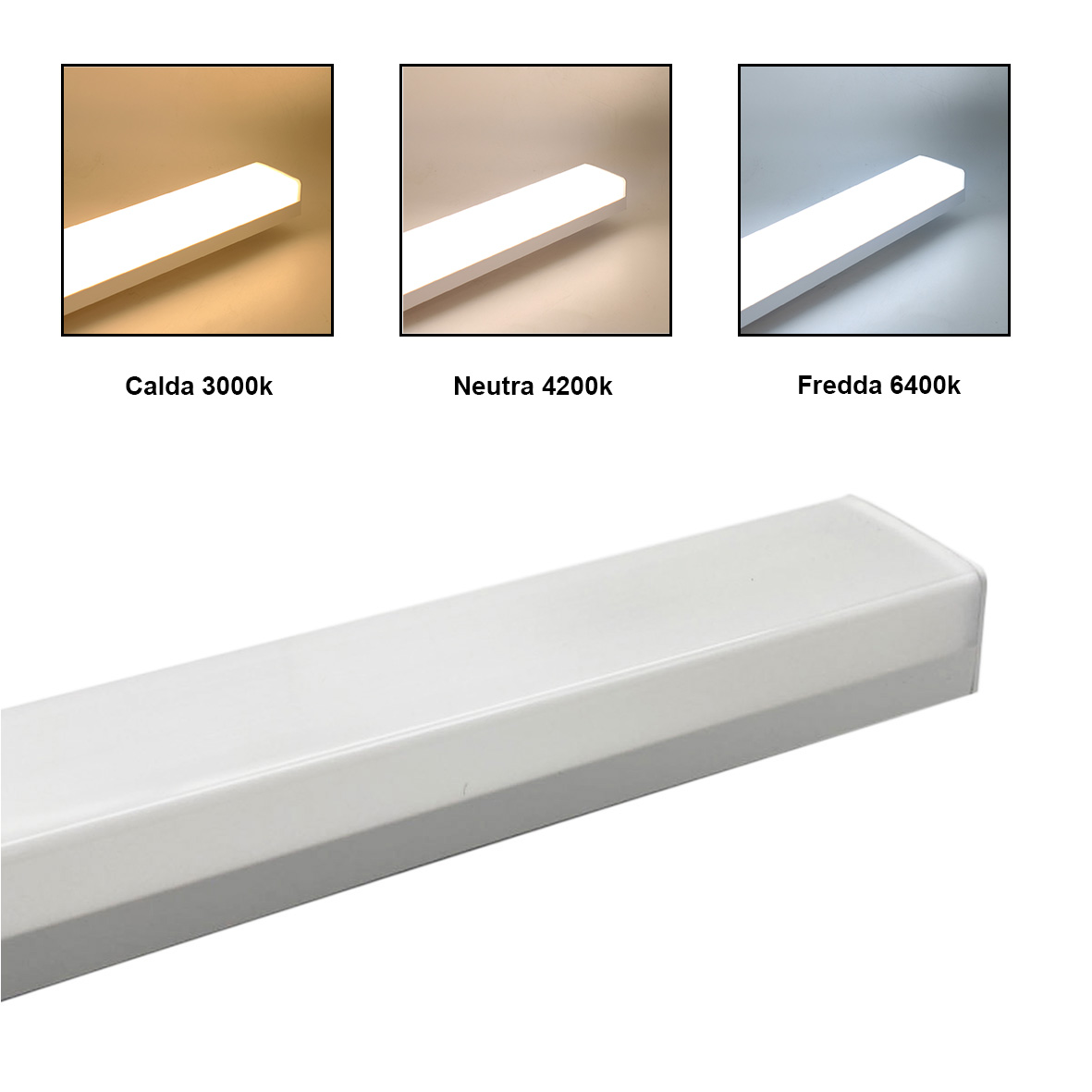 Plafoniera led 120 cm 48W 220V IP20 con possibilità di collegarla in serie.