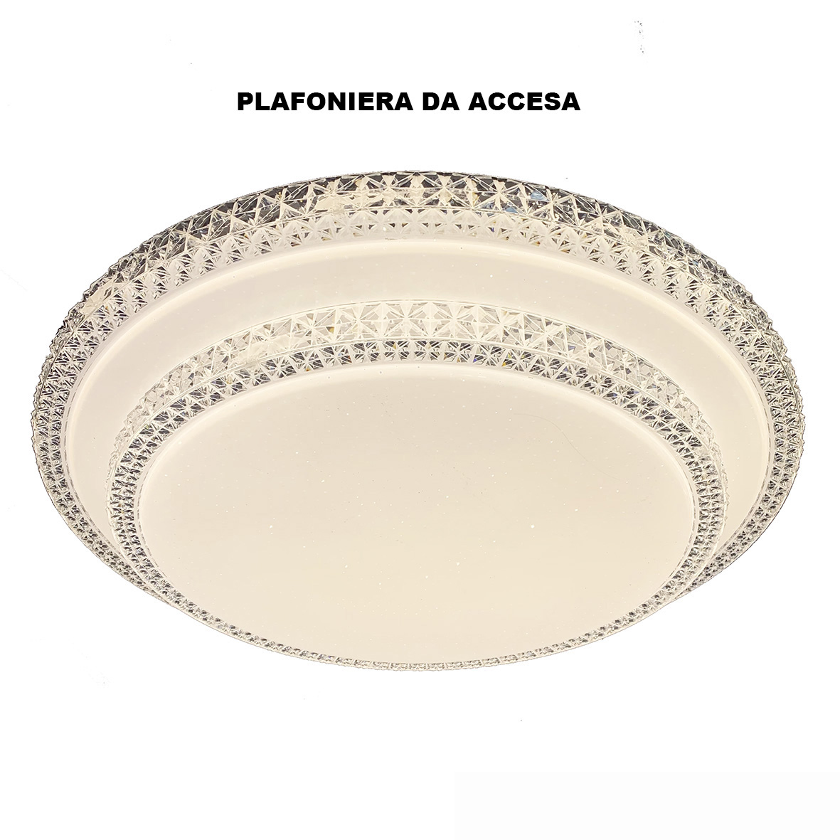 La lampada è estremamente elegante adatta a illuminare atri, saloni, soggiorni, cucine, camere da letto, locali e ristoranti. Infatti la plafoniera, oltre a delle gemme in acrilicolo, possiede dei piccoli puntini sulla copertura che una volta accesa creano un effetto stellato meraviglioso.