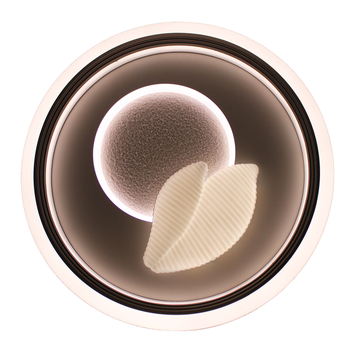 Il design è arricchito da un elemento decorativo a forma di foglia, con una texture a coste che aggiunge un tocco di originalità. Con una potenza di 72W, questa plafoniera non è solo esteticamente gradevole, ma anche energeticamente efficiente, rappresentando una soluzione di illuminazione moderna e funzionale.