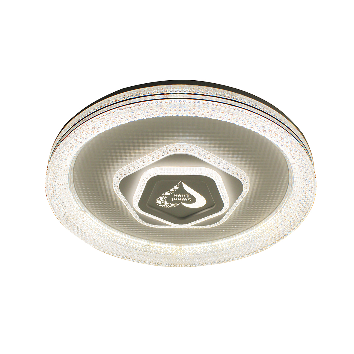 La lampada offre una luminosità di circa 6480 Lumens, è perfetta per illuminazione interna come ristoranti, locali, salotto, sala da pranzo o anche camera da letto. La plafoniera è realizzata in PVC, composta da gemme in acrilico al bordo e la scrittura “Sweet Love” nel centro del diffusore.
