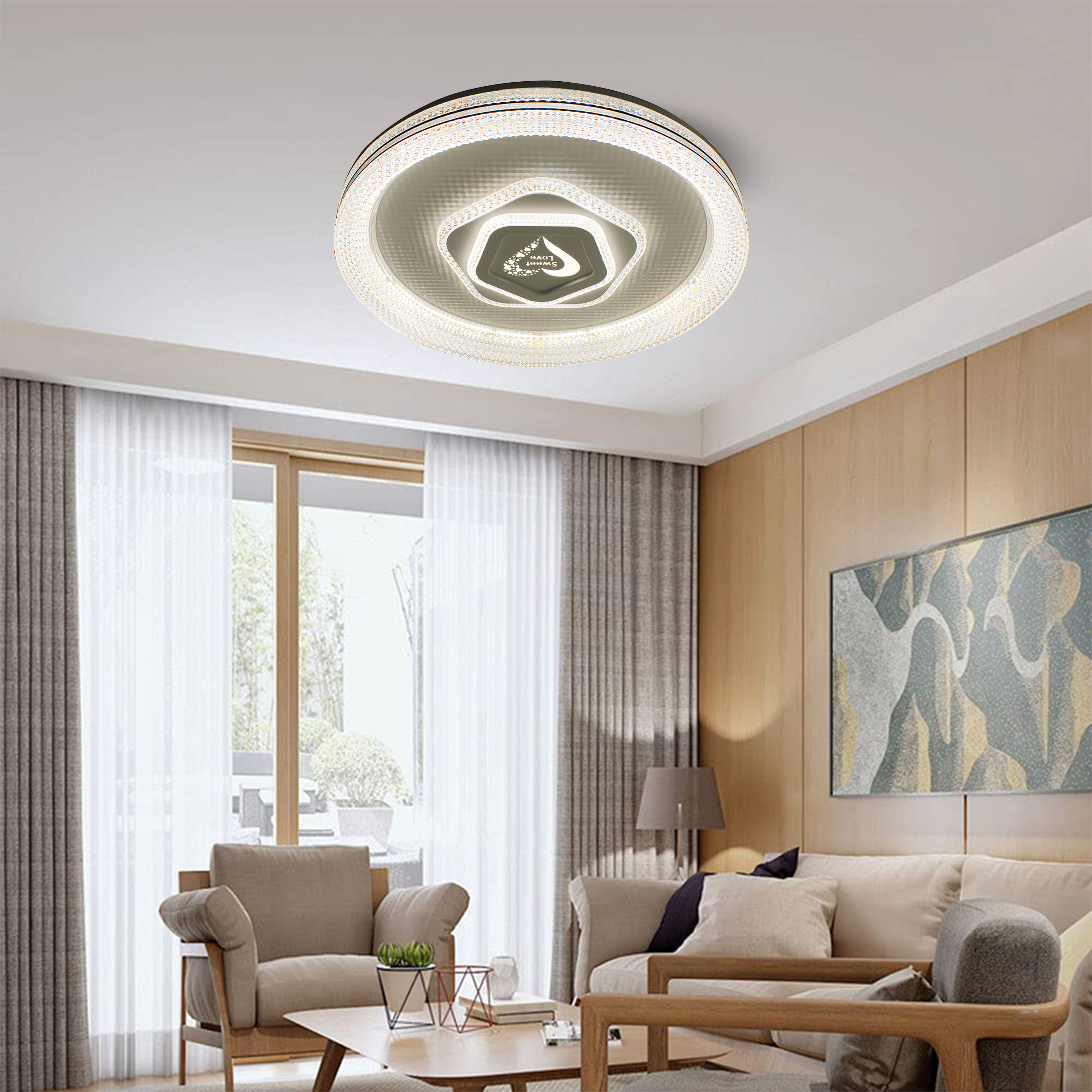 Plafoniera a soffitto 72W caratterizzata da un design elegante e moderno, offre la possibilità di alternare 3 tonalità di luce nei due cerchi di led: calda 3000k, naturale 4200k e fredda 6400k. Ogni opzione è progettata ad adattarsi alle diverse esigenze e atmosfere, garantendo sempre il massimo comfort visivo.