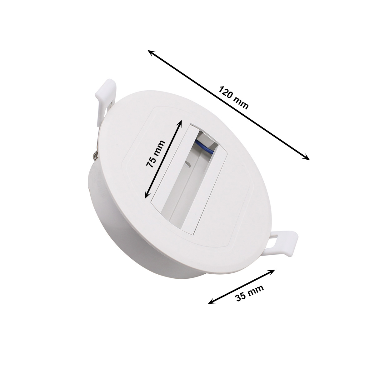 Lunghezza per ospitare il faretto monofase: 75 mm