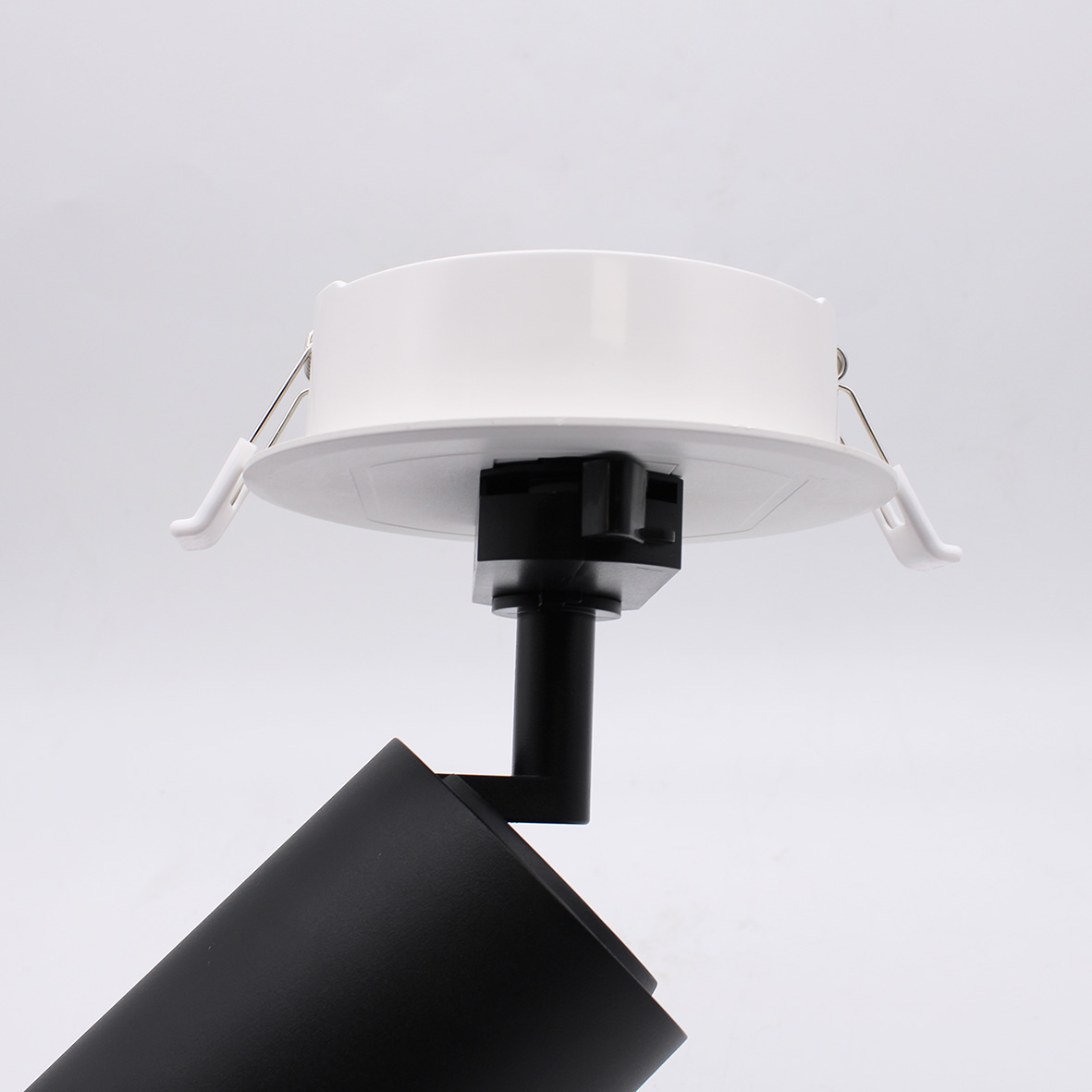 Il portafaretto da incasso per faretti monofase, è un supporto per trasformare i faretti a binario, in faretti da incasso, senza la necessità di installare un binario lungo.