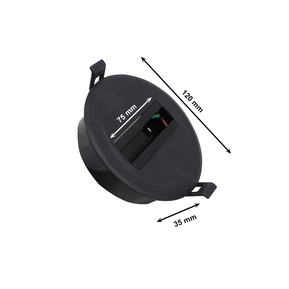 Lunghezza per ospitare il faretto monofase: 75 mm