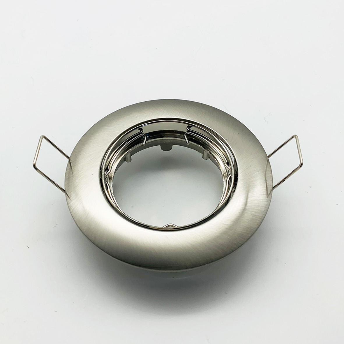 Portafaretto ad incasso in metallo con ghiera orientabile, ideale per il montaggio a controsoffitto e compatibile con lampadine LED. Grazie al design metallico spazzolato e alle dimensioni compatte, si integra perfettamente in qualsiasi ambiente, garantendo un’illuminazione efficiente e di qualità.