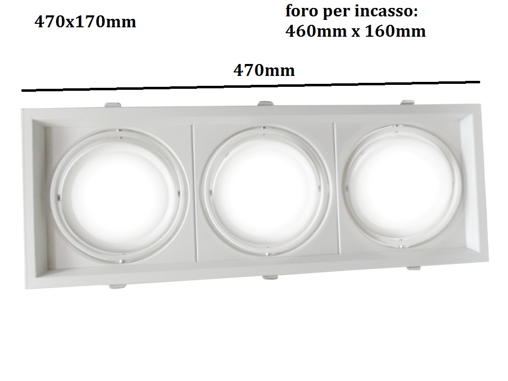 Portalampada per faretto LED incasso da 3 inserti per lampada ghiera orientabile. I faretti non sono inclusi nel portalampada.