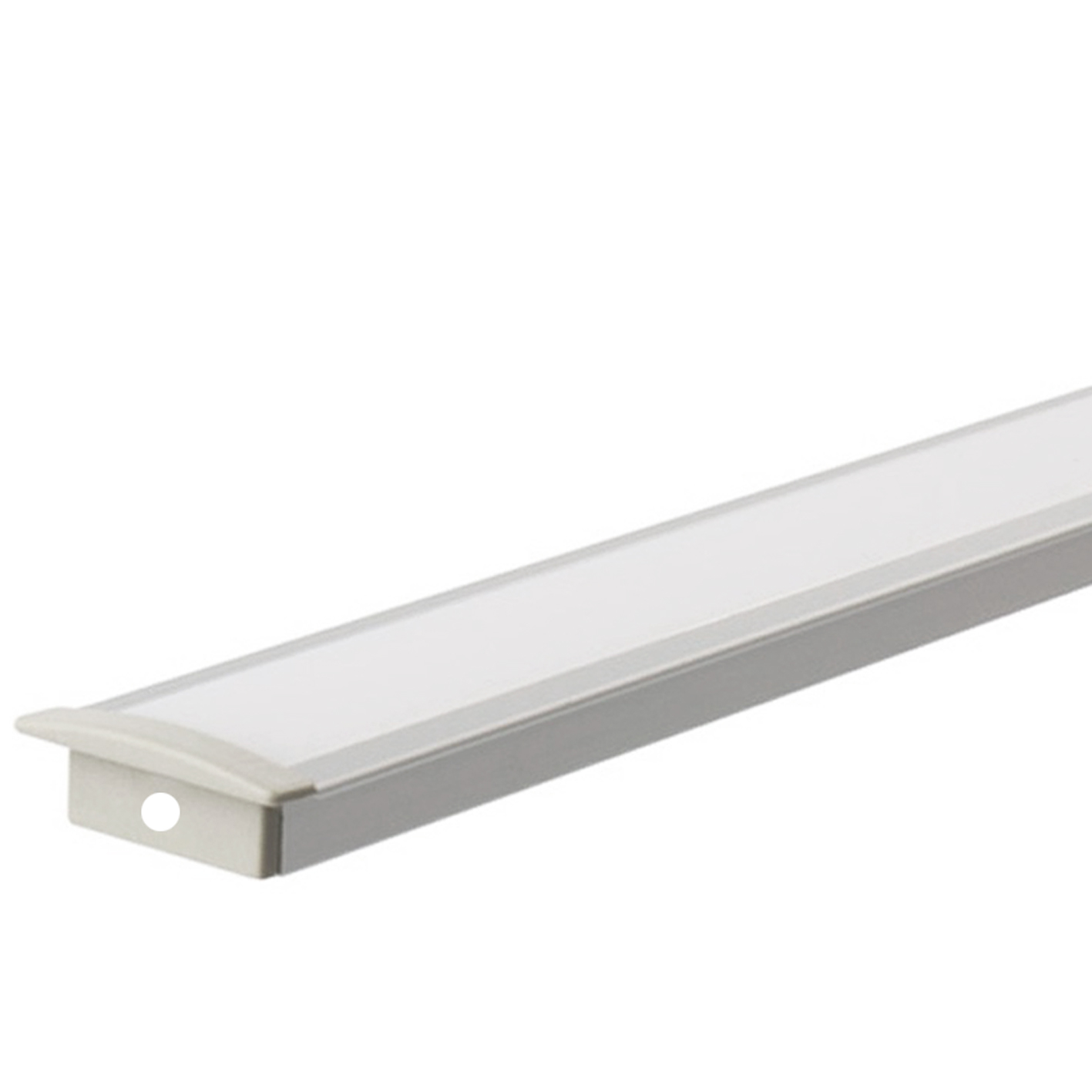 Questo profilo da incasso è realizzato alluminio anodizzato con copertura opaca bianca, che permette un'installazione semplice ed elegante di diversi tipi di strisce a LED, per verificarne la compatibilità è consigliato controllare le misure della barra a incasso.