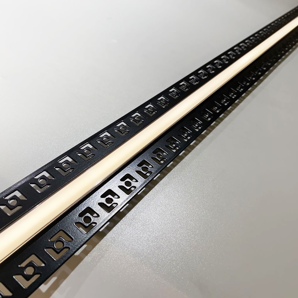 La copertura nera satinata aiuta a nasconde perfettamente la striscia LED una volta spenta, rilasciando un aspetto elegante e pulito al profilo di alluminio. Inoltre, aiuta a diffondere la luce e creare un effetto di unica barra luminosa.