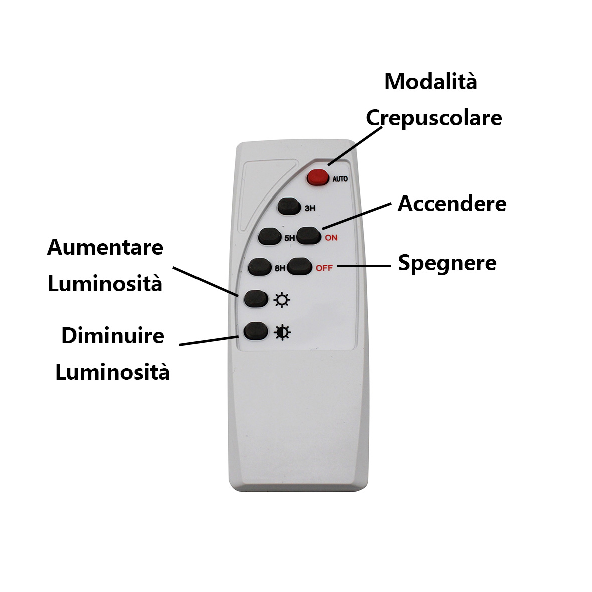 Il faro proiettore è dotato di sensore crepuscolare: si spegne in presenza di luce e si accende in assenza di luce. E' possibile inoltre regolare l'intensità della luce attraverso un comodo telecomando Wireless a distanza anche di 15 metri.