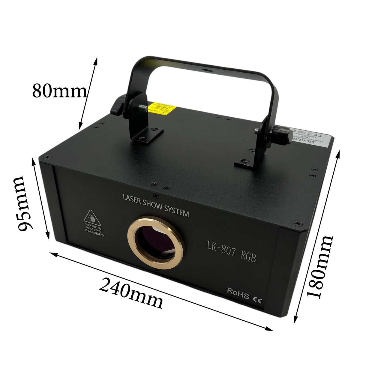 Scatena lo spettacolo di luci con il Proiettore Laser RGB 45W LK-807 Silamp! Dotato di tecnologia avanzata e design professionale, questo proiettore è perfetto per creare atmosfere uniche in qualsiasi evento. Grazie alla potenza di 45W e alla sorgente luminosa LED RGB ad alta luminosità, offre una varietà di effetti dinamici: dalle linee di scansione ai motivi 3D come animali, ballerine e cuori, fino a stelle brillanti nella nebbia.