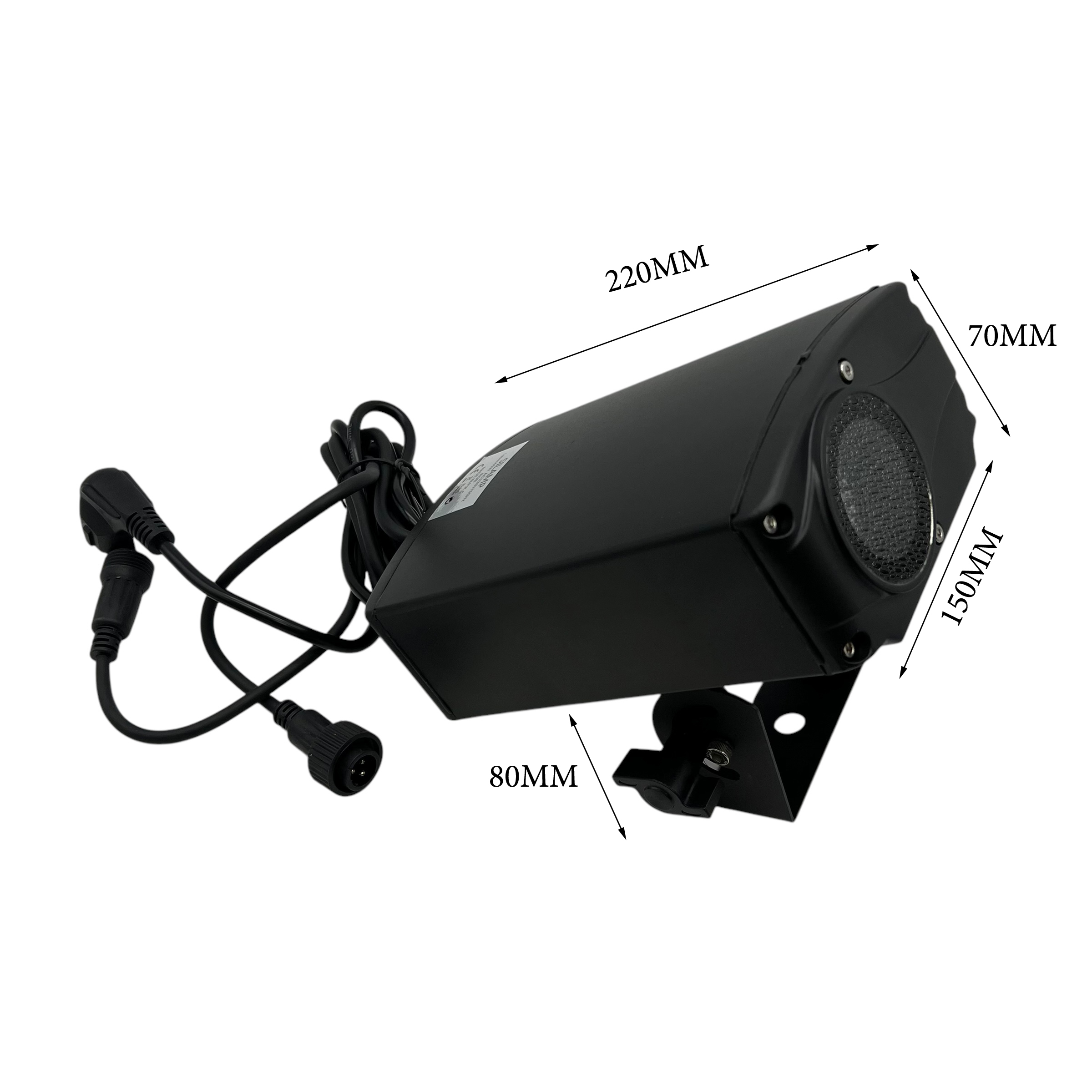 Il sistema ottico avanzato garantisce una proiezione nitida e brillante fino a 8 metri di distanza, mentre il menu di controllo e il supporto per DMX professionale offrono la massima flessibilità di gestione degli effetti luce.