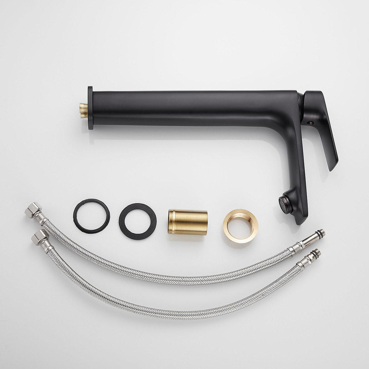Rubinetto Miscelatore Nero opaco per Lavabo bagno completo di accessori X001-5-B