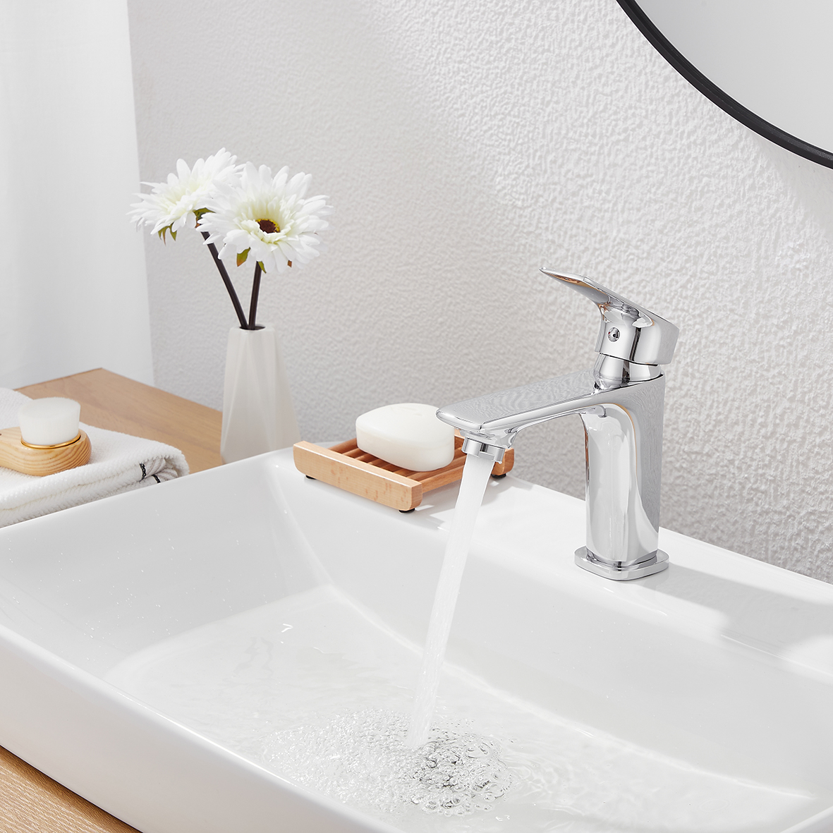 I rubinetti del bagno sono presentati con uno stile elegante e minimalista, perfetto complemento della moderna casa di oggi. Abbinato a linee nitide e bianchi brillanti, evidenzia il suo grado premium. La valvola di tenuta è dotata di disco ceramico incorporato, non richiede lubrificazione ed elimina l'usura delle guarnizioni, riduce il rischio di perdite. Il robusto sistema di installazione consente una manutenzione più semplice e un uso più lungo.