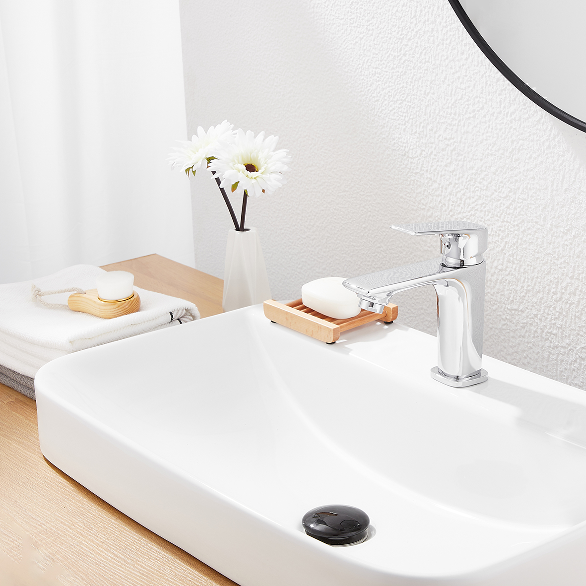 I rubinetti del bagno sono presentati con uno stile elegante e minimalista, perfetto complemento della moderna casa di oggi. Abbinato a linee nitide e bianchi brillanti, evidenzia il suo grado premium. La valvola di tenuta è dotata di disco ceramico incorporato, non richiede lubrificazione ed elimina l'usura delle guarnizioni, riduce il rischio di perdite. Il robusto sistema di installazione consente una manutenzione più semplice e un uso più lungo.
