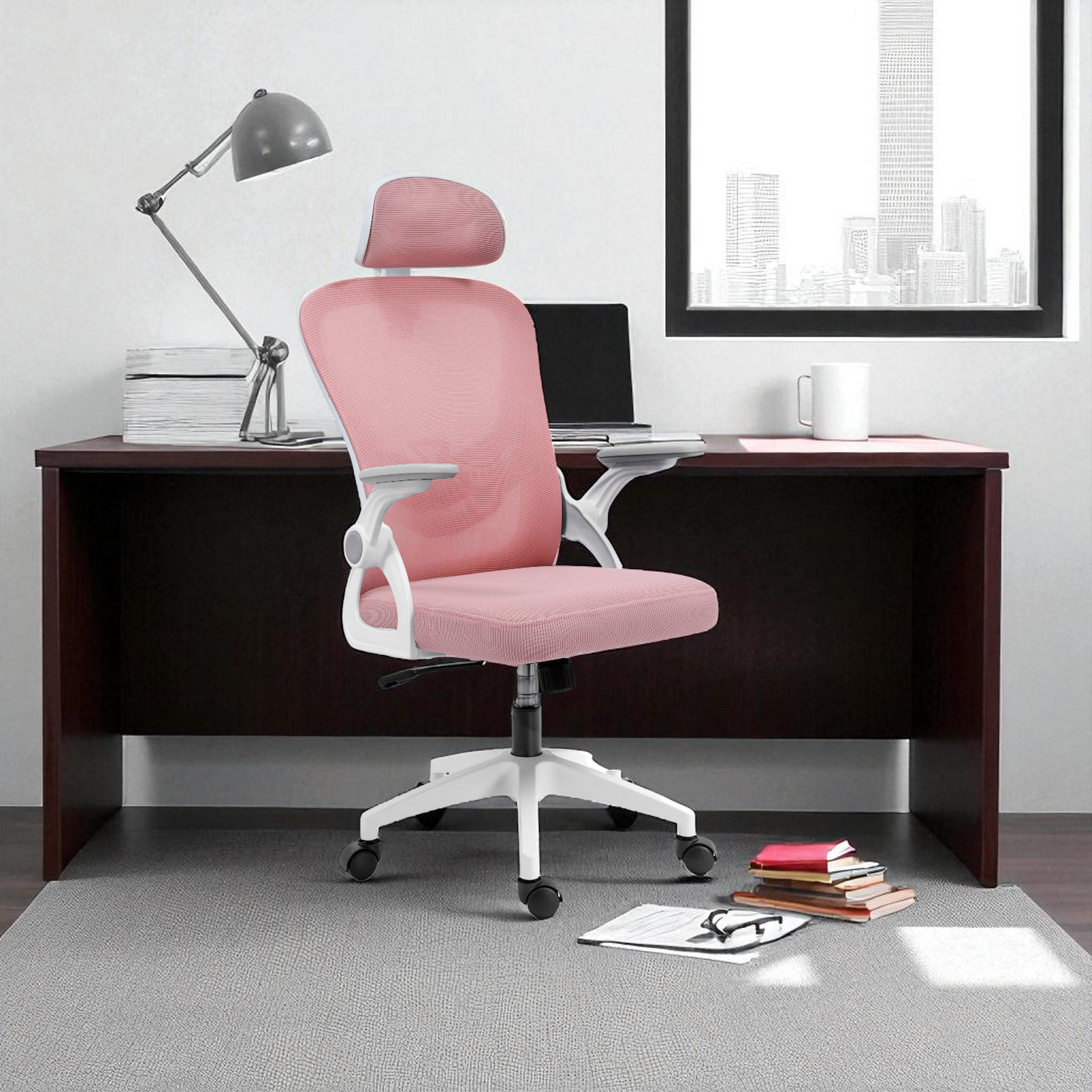 Sedia Rosa Ergonomica da Ufficio con Altezza Regolabile Braccioli Pieghevoli