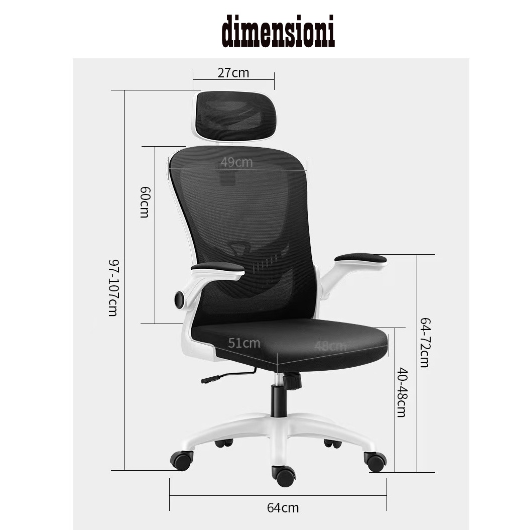Sedia Ergonomica da Ufficio·braccioli ribaltabili·poggiatesta regolabile