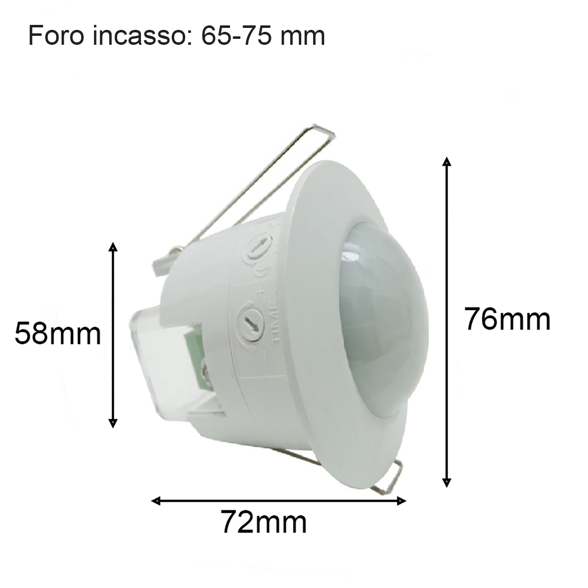Sensore di movimento con crepuscolare rivelatore di presenza a 360° ad incasso