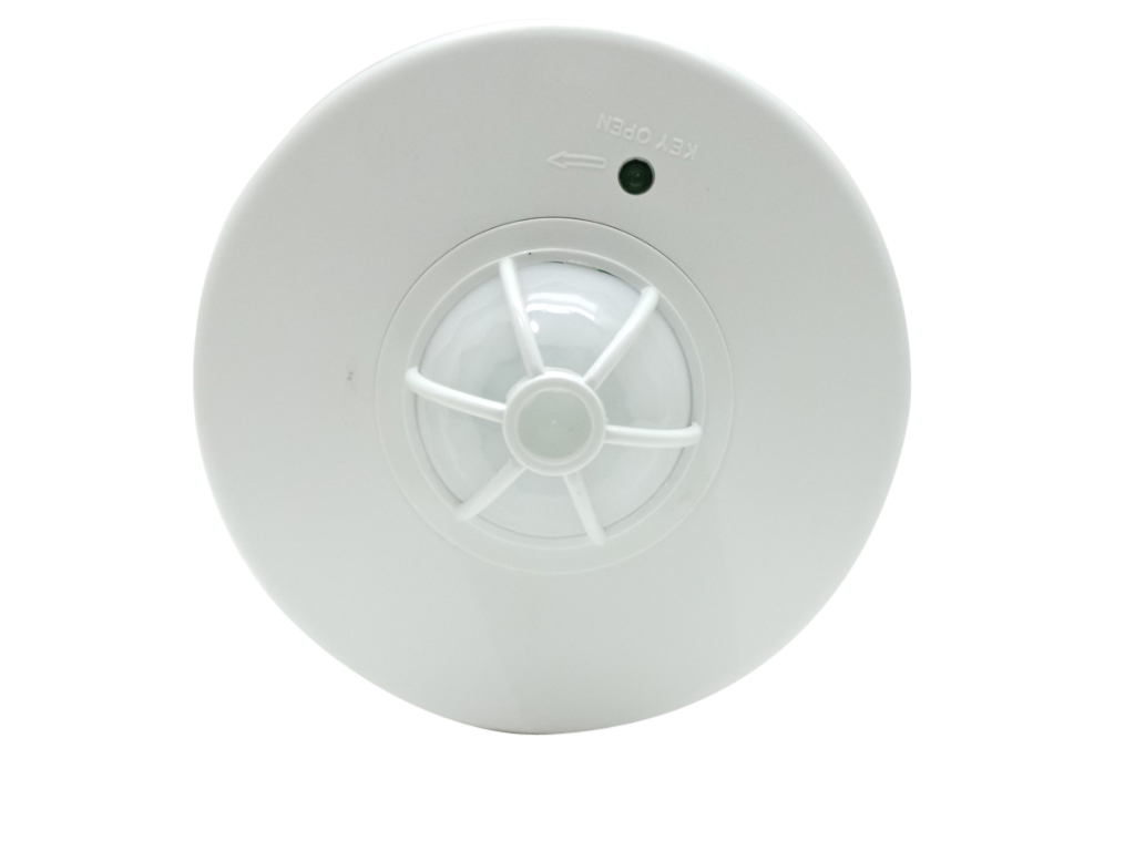 Sensore di movimento a 360° possibilità' di montaggio a soffitto e non, con contatto pulito a relè regolabile in sensibilità e durata del tempo di eccitazione dopo la rilevazione del movimento Colore bianco.