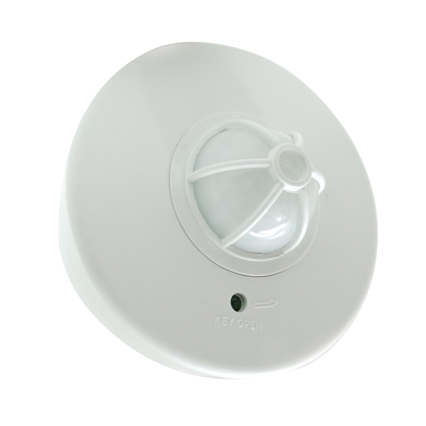 Sensore di movimento a 360° possibilità' di montaggio a soffitto e non, con contatto pulito a relè regolabile in sensibilità e durata del tempo di eccitazione dopo la rilevazione del movimento Colore bianco.