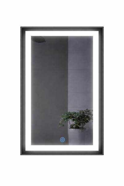 L'accensione è semplice e comoda per mezzo di un pulsante TOUCH che si retroillumina di Blu quando la lampada è accesa ed è situato nella parte bassa e centrale dello specchio (se installato in verticale).