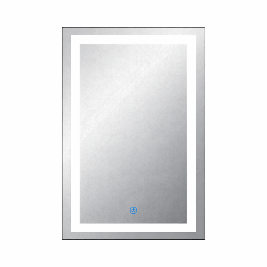 L'accensione è semplice e comoda per mezzo di un pulsante TOUCH che si retroillumina di Blu quando la lampada è accesa ed è situato nella parte bassa e centrale dello specchio (se installato in verticale).
