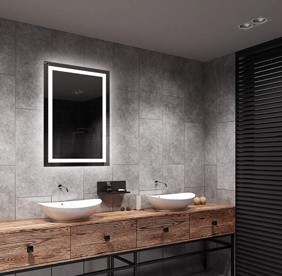 Lo specchio è dimmerabile: tenendo premuto il pulsante di Accensione è possibile aumentare e diminuire l'intensità della luce a proprio gusto.